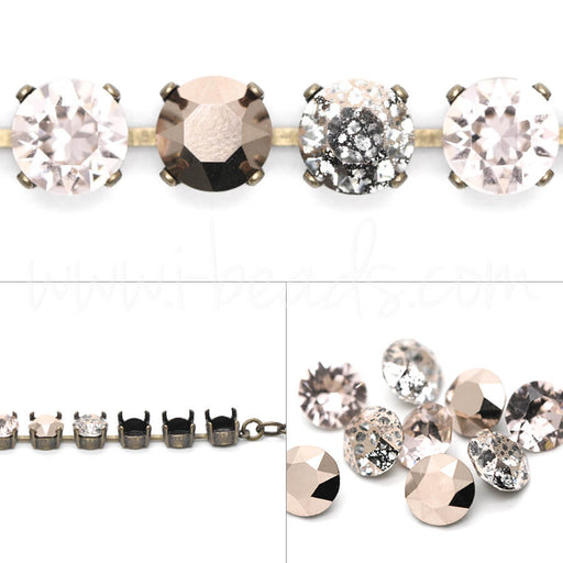Chacun d'eux peut comprendre un nombre de supports plus ou moins important, selon qu'il s'agisse d'un bracelet ou d'un collier. De même, vous trouverez des sertis avec des supports plus ou moins petits, en fonction des cristaux de Swarovski qu'ils accueilleront.
