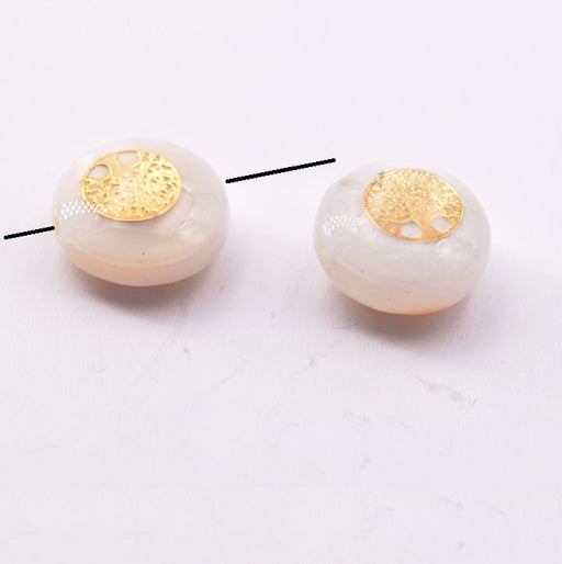 Flache runde Muschelperle mit goldenem Lebensbaum 9 x 3,5 mm, Loch 0,8 mm