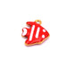 Kleiner Fisch Anhänger mit rot gestreifter weißer Emaille - Goldener Stahl -12mm - Loch: 1mm (1)