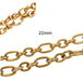 Chaine en acier inoxydable 304 doré composé de deux types de mailles ovales différentes 12x16 et 14x22mm. Les mailles font 3mm d'épaisseur et sont non soudées.